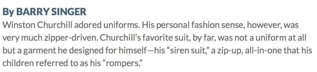 WINSTON CHURCHILL & HIS SIREN SUIT: Churchill Style in The International Churchill Society’s “Chartwell Bulletin” May 1, 2019 >READ MORE<